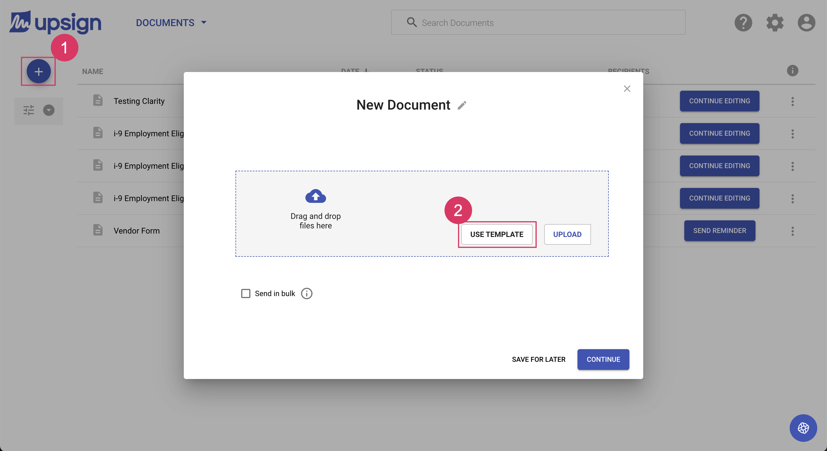 - Choose Use Template to pick a template or templates from your template library